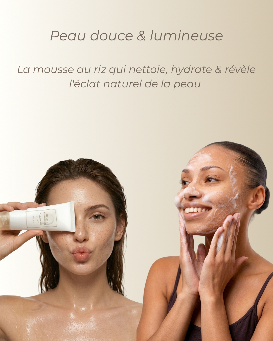 Notre mousse nettoyante au riz purifie la peau en douceur, hydrate en profondeur et révèle un éclat naturel dès les premières utilisations.